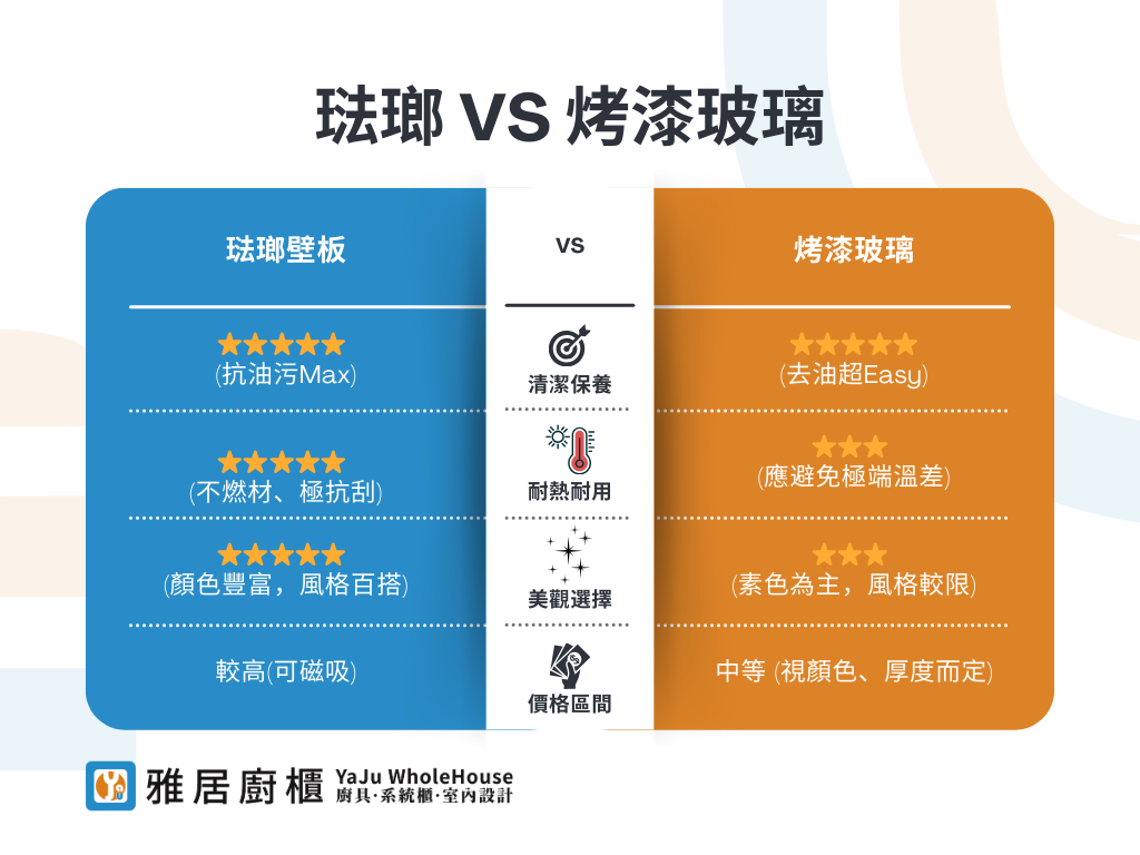 烤漆玻璃勝在易清潔、預算花費與空間通透感。
