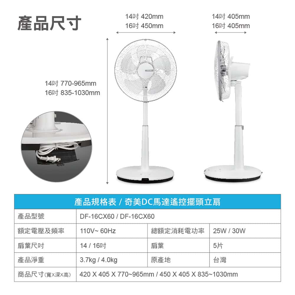 【奇美家電】14吋DC馬達遙控擺頭電風扇